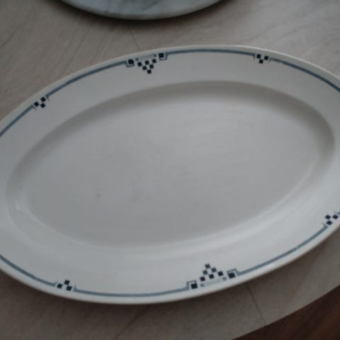 Arabian Hildur pyöreä tarjoiluvati, halkaisija 31 cm. Lasituksen alla posliinissa halkeamia ja tummentumaa. Lautanen on edelleen käyttökelpoinen astiana erilaisiin ruokailutilanteisiin.