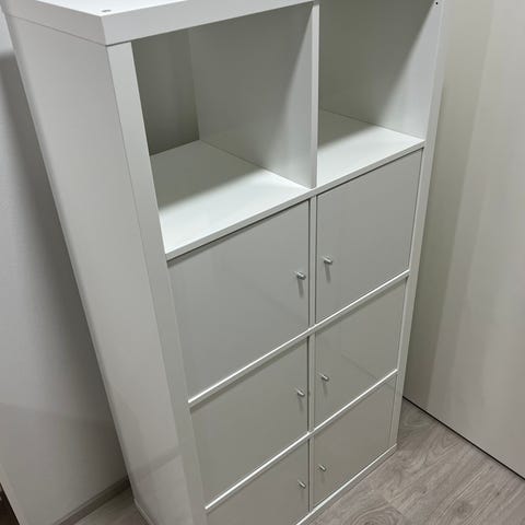 Valkoinen Ikea Kallax hylly. Ollut lastenhuoneessa hyllynä, joten pientä käytön jälkeä saattaa olla mutta yleisesti hyväkuntoinen.