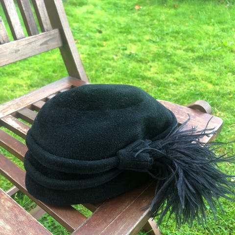 Käyttämätön vintagetyylinen lierihattu. Kokomerkintää ei ole, arviolta 57cm.