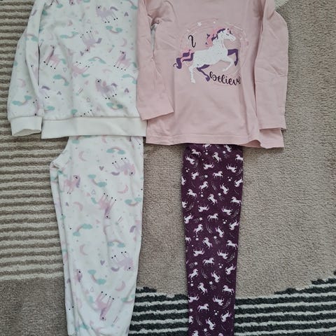 H&M ja zaran kaksiosaisia pitkä- hihaisia ja lahkeisia pyjamia. Kokomerkintä 110/116