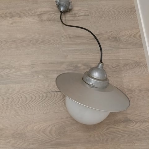 Vanha vintage tyylinen ripustettava loisteputki teollisuus valaisin 125cm pitkä. Muokkaamalla soveltuu myös esim ledvalaisimeksi.