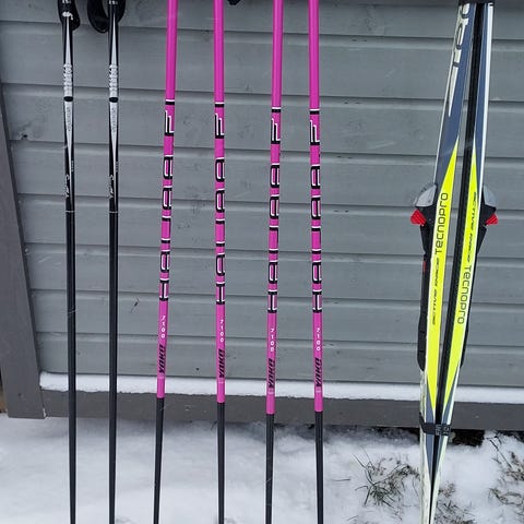 Myydään hiihtosauvat, pituus 125 cm. Toisesta sauvasta alhaalta irronnut pieni pala muovia. Voit myös tarjota mielestäsi sopivaa hintaa😊