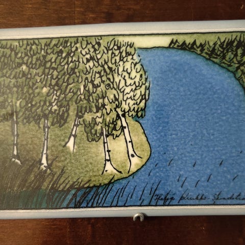 Arabian Onnitellen-seinälaatta, jonka on suunnitellut Heljä Liukko-Sundström.