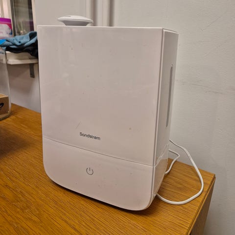 Trotec ilmankostutin valkoisella värillä. Laite on suunniteltu sisäilman kosteuden lisäämiseen.
