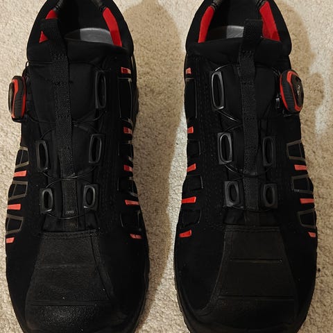 Boa kiristyksellä. PTC-tekstiilinen naulaanastumissuoja, alumiininen varvassuoja ja Vibram-nitriilikumipohja. Päällinen on vettä hylkivä.