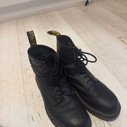 Dr. Martens saappaat, koko 43, musta väri. Nahkamateriaali. Nilkkapituiset, nauhalliset saappaat, jotka sopivat monipuoliseen käyttöön.