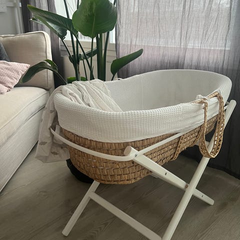 Ihana Carena-merkkinen mooseskori/ensisänky keinujaloilla. Sopii hyvin vastasyntyneelle. Irroitettavat päälliset/pehmusteet ja patjan päällinen. Kantokahvat, niin helppo siirtää koria. Kevyt nostaa/siirrellä myös jalkojen kanssa.
