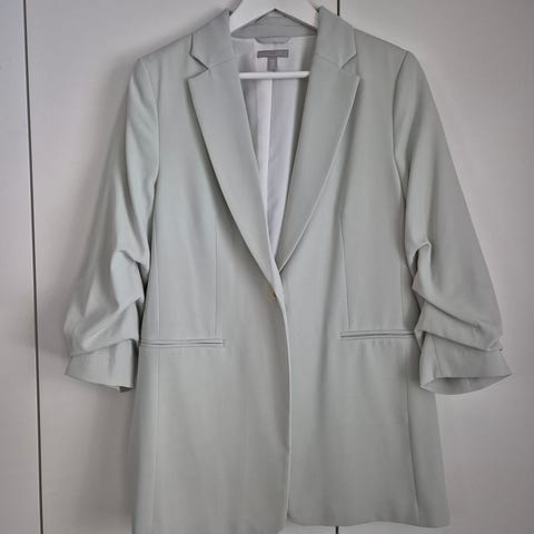Kuvanmukainen bleiseri. Pari vuotta kaapissa roikkunut mutta ei pääse käyttöön. Kiiltävä musta/ruskea kangas. Koko M.