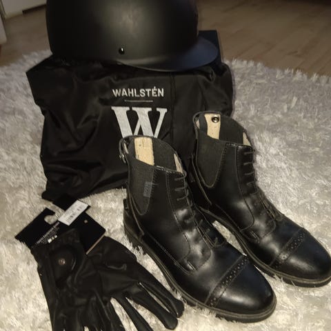 Ratsastustarvikepaketti (kenkä 39, chaps M, kypärä 58)