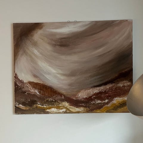 Abstrakti maalaus 60x80cm canvakselle. Kerroksellisuutta ja yksityiskohtia