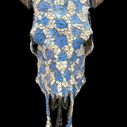 Lasin peittämä lehmän pääkallo. Kallo on kokonaan käsin koristeltu suurella huolella. Se on epätavallinen koristeesine.Arvioidut mitatPituus: 54 cmLeveys: 45 cmHUOM:Olemme lisänneet kuvia käsityöläisistämme työssään antaaksemme kuvan siitä, miltä mosaiikkikuoren luomisen prosessi näyttää.Paino, joka mainitaan, sisältää pakkausmateriaalin.VastuuvapauslausekePäähän on kiinnitetty kiristysnarusta, jotta se voidaan kiinnittää seinälle.Sarvet irrotetaan kuljetuksen ajaksi, ja ne on helppo kiinnittää uudelleen.Sarvet ovat aina pakattu laatikon pohjalle, kallon alle. Varmista, että poistat sarvet ennen pakkauksen hävittämistä.- Koska kyseessä on luonnollinen kallo, siinä saattaa olla joitakin luonnollisia pieniä halkeamia, uurteita tai puuttuvia hampaita. Tämä on normaalia. Katso kuvat viitteeksi.- Kallomme puhdistetaan ammattilaisvoimin, mutta joskus hampaissa voi esiintyä pieniä värimuutoksia. Tämä on luonnollista ja normaalia, eikä siihen voida paljoa vaikuttaa. Katso kuvat ohjeiden tueksi.LähetysKohde lähetetään seurantanumerolla DHL Parcelin, DPD:n tai postNlin kautta. Seuranta päivittyy Catawiki-luettelossasi, kun pakettisi on jätetty postiin.Ole hyvä ja tarkista säännöllisesti välttääksesi pakettisi palautumisen meille, jolloin ostaja vastaa toisen lähetyksen toimituskuluista.Seurantaan Espanjaan ja Portugaliin käytä tätä linkkiä ja lisää Catawiki-erästäsi saatu seurantanumero.https://clientesparcel.dhl.es/LiveTracking/HomeEMME YHDISTÄ TOIMITUKSIA!!!- Jos sinulla on kysyttävää paketistasi, ota yhteyttä meihin Catawiki-viestipalvelun kautta. Yritämme vastata kolmen työpäivän kuluessa.