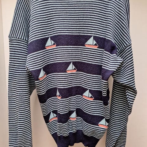 Vähäiselle käytölle jäänyt ehjä ja siisti marjapuuron värinen/kirjava lämmin paksuhko "villapaita".