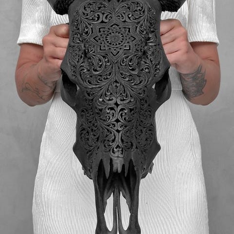 EI MINIMIHINTAA - Upea suuri harmaa käsin veistetty puhvelin kallo - Tähti