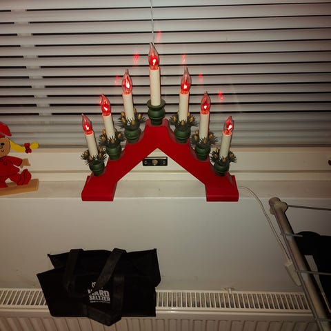 Toimiva sähkökäyttöinen kynttelikkö, puinen jalusta. Uutta vastaava kunto. Nouto Liedosta tai toridiili