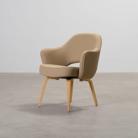 Executive Chair on Eero Saarisen vuonna 1948 suunnittelema tuoli. Tuolin ajaton design ja muotoilu sopii edelleen saumattomasti niin ruokapöydän ääreen, kuin työhuoneelle, kokoustamiseen tai oleskeluunkin. Tuoli on verhoiltu sinisellä Messenger 086 Voyage -kankaalla ja sen jalat ovat tammea. Knoll Internationalin perusti saksalainen Hans Knoll New Yorkissa vuonna 1938. Hansin kuoltua, hänen vaimonsa Florence Knoll otti ohjat käsiinsä. Florence johti yritystä ja teki yhteistyötä lahjakkaiden suunnittelijoiden, kuten Eero Saarisen, Ludwig Mies van der Rohen, Richard Schultzin ja Harry Bertoian kanssa. Eero Saarinen (1910-1961) oli suomalais-amerikkalainen arkkitehti, joka vaikutti osaltaan sodanjälkeisen amerikkalaisen arkkitehtuurin edistyksellisyyteen ja optimismiin. Hänen muotoilujaan käytettiin myös monissa yrityksissä ja kodeissa, ja näin se auttoi muokkaamaan Yhdysvaltojen esteettistä maisemaa 1950- ja 1960-luvuilla.