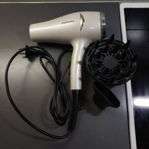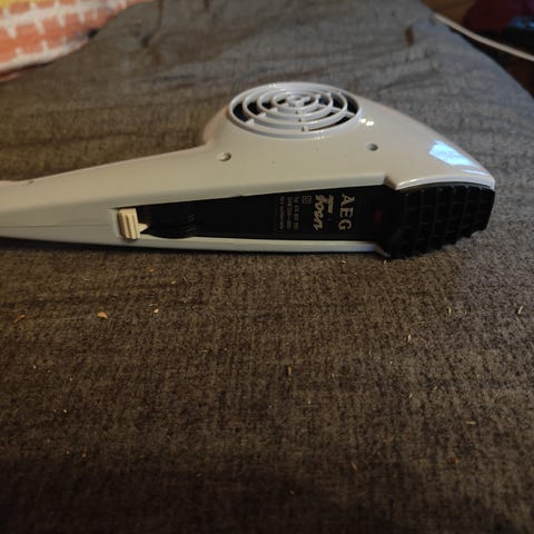Vidal Sassoon merkkinen hiustenkuivaaja, 1600W teho. Pinnassa käytön jälkiä mutta toimii.