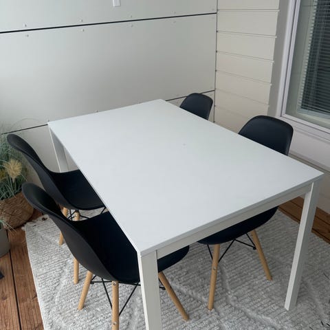 Pöytä ja 2 tuolia musta ja vaalea puu