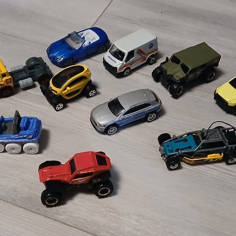Autot ovat käytettyjä, leikin jälkiä ja pientä kulumaa löytyy, ei alkuperäispakkauksia.