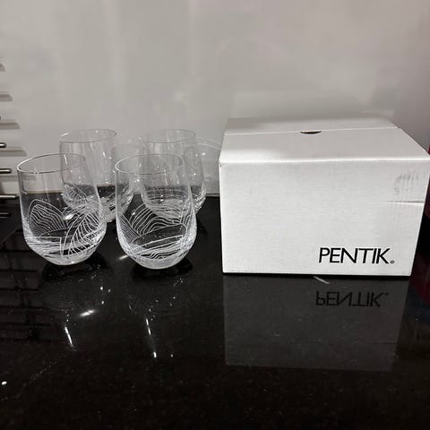 Myydään kaksi kappaletta tarpeettomaksi jääneitä Pentikin Valo-sarjan kuohuviinilaseja. Lasit ovat kirkkaat, tyylikkäät ja ne on suunnitellut Anu Pentik.