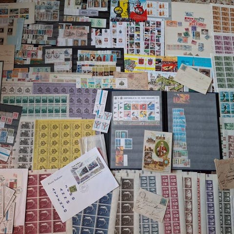 Vatikaanin postimerkkejä suuria määriä, pussukoissa, korteilla, lehdillä, FDC:tä ja kirjeitä jne. Erittäin mukavaa – kaikki yhdessä laatikossa.Katso myös kuvat.Geenin lähetys Yhdysvaltoihin.Vastuuvapauslauseke: täällä ja tuolla saattaa olla heikomman laatuluokan leima.
