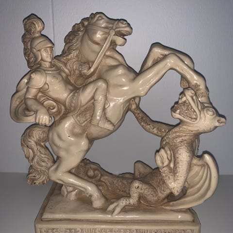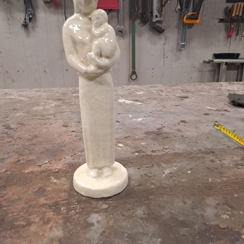 Se kuvastaa hyvin patsashahmon olemusta.Teos on vanha.