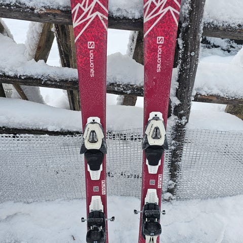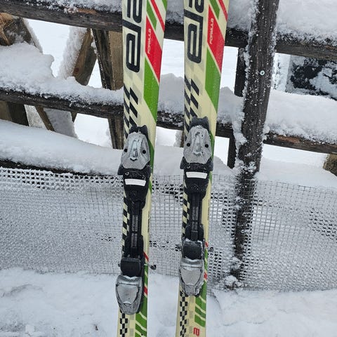 Etupinnalta maali irtoillut ja pohjassa laskemisen jälkijä. Näillä saa ensimakua lasketteluun ja jatkossa voi hommata paremmat.