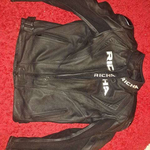 Richa nahkatakki musta. Takki on valmistettu nahasta ja siinä on vetoketjut ja säädettävät hihansuut. Takissa on pitkä hiha ja se on suunniteltu miehille.suojukset kyynär olka ja selkä, irroittettava sisävuori. Koko 56 mutta todellinen ehkä 52.voidaan myös vaihtaa isompaan ajo takkiin miel. XL