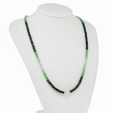 Kaulakoru - 18 kt. Keltakulta Helmi - Smaragdi