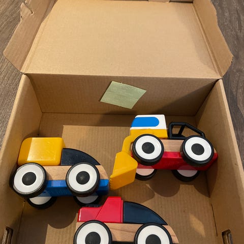 IKEA puiset lasten lelut, nosturikuorma-auto. Magneetit palikoissa ja nosturissa