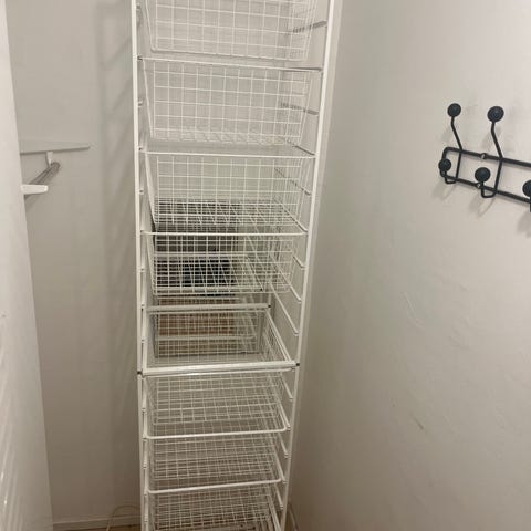 Myydään polkuhinnalla IKEAn säädettävää Elvarli-hyllyjärjestelmää. Kyseessä tikkaaton malli. Mukana on ainakin:
