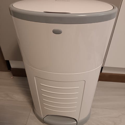 Korbell jäteastia, tilavuus 16 litraa. Valmistettu valkoisesta muovista. Estää hajujen leviämistä tehokkaasti.