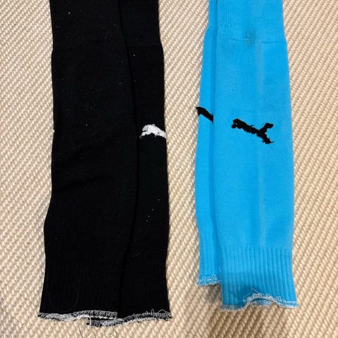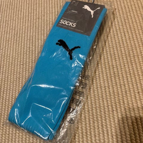 Puma urheilusukat mustat, koko 43-46. Sukissa on harmaita ja valkoisia yksityiskohtia sekä Puma-logo.