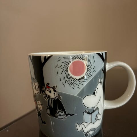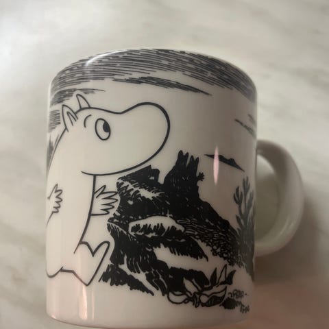 Arabia Muumi Seikkailu kannu ja muki tarralla