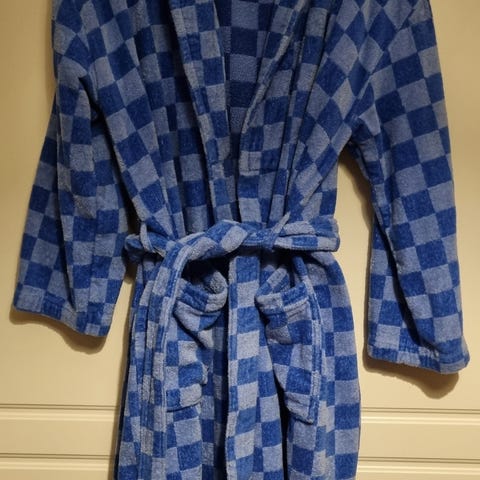 Miesten kylpytakki hyvässä kunnossa. Juuri pestynä. Kissa ja koira talous