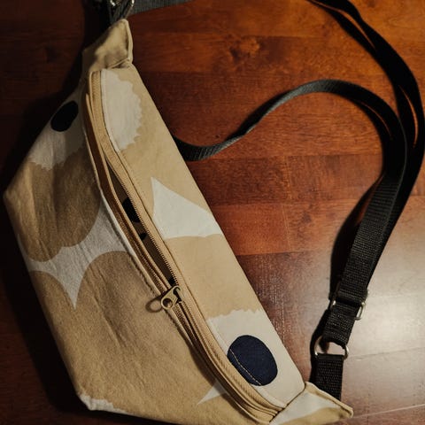 Adidas x Marimekko vyölaukku, jossa on säädettävä vyöosa ja vetoketjullinen säilytystila. Pientä haaleaa tahraa (viimeinen kuva), ei yritetty puhdistaa. Muuten siisti kunto, vähälle käytölle jäänyt. Vain nouto, koiratalous.