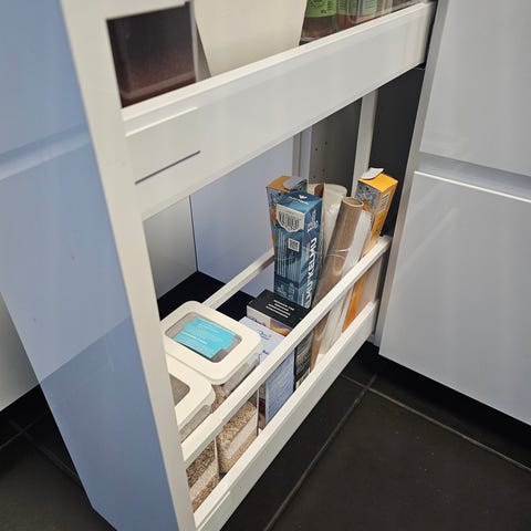 Ollut keittiön allaskaapissa, altaan alapuolella. Siihen ei voi laittaa syvempää laattikkoa. Ollut paikallaan vuodenpäivät.