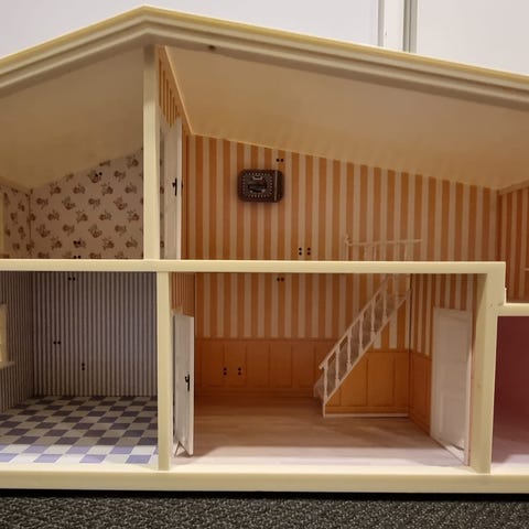 Paljon leikitty nukkekoti, 3 krs. Joniin verrannkäytönjälkiä, mutta ehjä ja vielä monet leikit edessä 😊