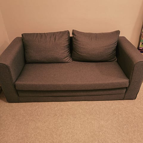 Hyvin vähän käytetty, tahraton ja jämäkkä vuodesohva lemmikittömästä taloudesta. Istuinosan leveys 140 cm, kokonaisleveys 160 cm. Vain nouto. Sohvan sisällä säilytyslaatikko vuodevaatteille. Tyynynpäälliset irrotettavat.