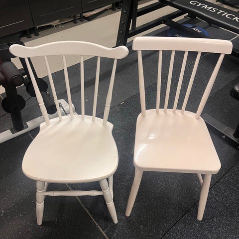 Kolme mustaa puista pinnatuolia, yksi hieman rikki. Myydään vain pakettina.