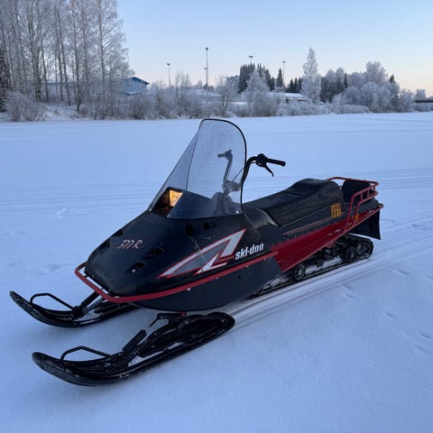 Siisti 4 t Kelkka ei pakokaasunkäryjä. uusi akku. Taka iskari. Reki. Valmiina ajoon. Pitkä ja leveä tela 50cm