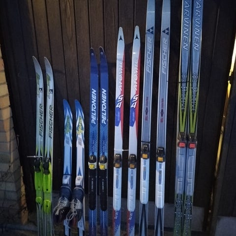 Käytetyt lasten sukset+ monot eri kokoja.