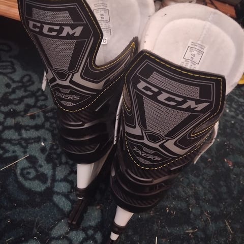 44 kokoiset luistimet suojilla, maila, kypärä suojaverkolla, kiekko, mailateippi.
