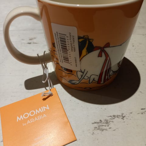 Hyväkuntoinen hosuli muumimuki, ei kriksuja tai tummentumaa