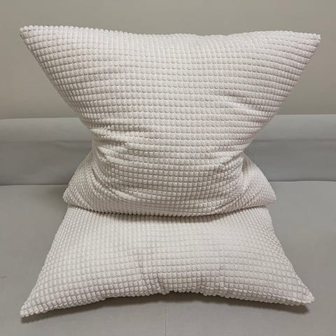 Set of 2 pillows with filling and 3 additional pillows cases.