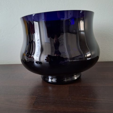 Riihimäen lasin kirkas Erkki tarjoilukulho. Suunnittelija Erkkitapio Siiroinen.