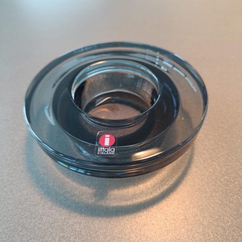 Harmaa Iittalan Halo-tuikkukippo. Suunnittelija Harri Koskinen.