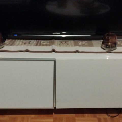 Noin vuoden vanha ikean lappviken televisiotaso. Leveys 120 cm, syvyys 41,5 cm, korkeus 48,5 cm.