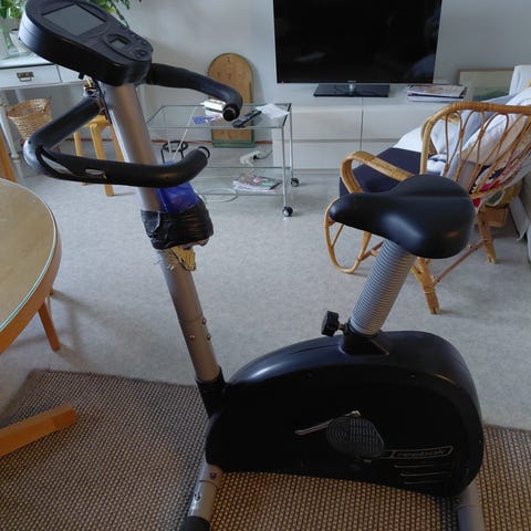 Annetaan crosstrainer Bremshey CR7 (lisätietoja googlettamalla). Jykevä, laadukas tuote. Jonkin verran jo kulumaa, mutta toimiva tuote! Ohjekirjaa tai laturia ei ole, mutta käynnistyy liikkeen voimasta. Ohjeet löytyy netistä. Joku yleislaturi tuohon sopinee jos tarvitsee. Pituussuunnassa vie tilaa noin 150cm käytössä, korkeudessa ainakin 170cm ja leveydessä reilu 50cm. Vaatii joko pakun tai peräkärryn liikutteluun, ei mene henkilöautoon. Autetaan kantamisessa ulos talosta.