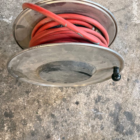 Vaihdettu "uusi" letku. Pituutta 10-12m. Kompuran liitäntäletkusta liitin uupuu ja ei seinätelinettä.