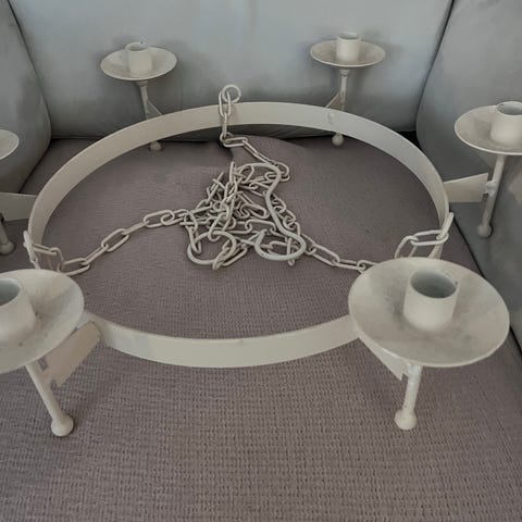 Painava, täysmessinkinen viisihaarainen kynttelikkö. Leiman mukaan valmistettu Italiassa. Korkeus noin 30 cm. Klassinen ja näyttävä sisustusesine juhlapöytään tai olohuoneeseen.